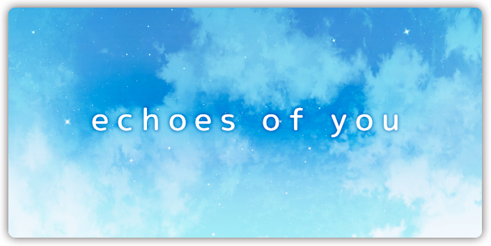 GAME いままで制作したゲームです。 君色プロムナード乙女アドベンチャー/R12推奨配布形態/WEBにてフリー配布卒業までパートナーを見つけられるのか?>>詳細ページへ echoes of you乙女短編アドベンチャー/R12推奨配布形態/WEBにてフリー配布君を好きになることは 僕の世界を変えること>>詳細ページへ